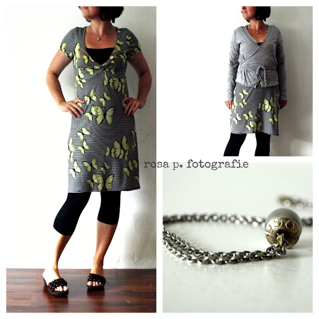 heute mit vielen ringeln und munteren gelben schmetterlingen. wegen des dunklen morgens mit einer wickel jacke aus jersey crash.